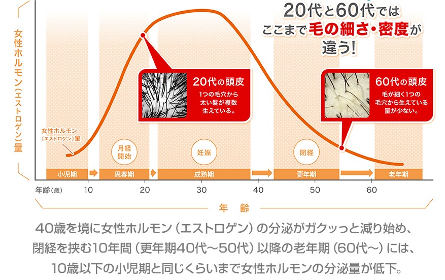 抜け毛の量が増えてきた、分け目や生え際が目立つ、髪の毛のボリュームが減ってきた、髪のセットが決まらない、薄毛を治したいそんな40代~60代の女性の方に人気です。