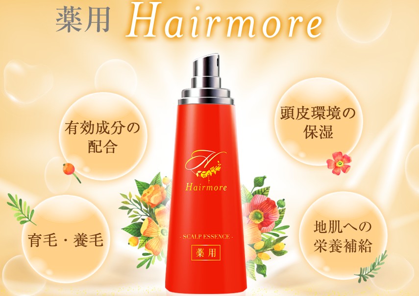 ※”ヘアモア”は、承認を受けた医薬部外品であり、育毛効果効能が認められた有効成分を配合した薬用育毛剤です。